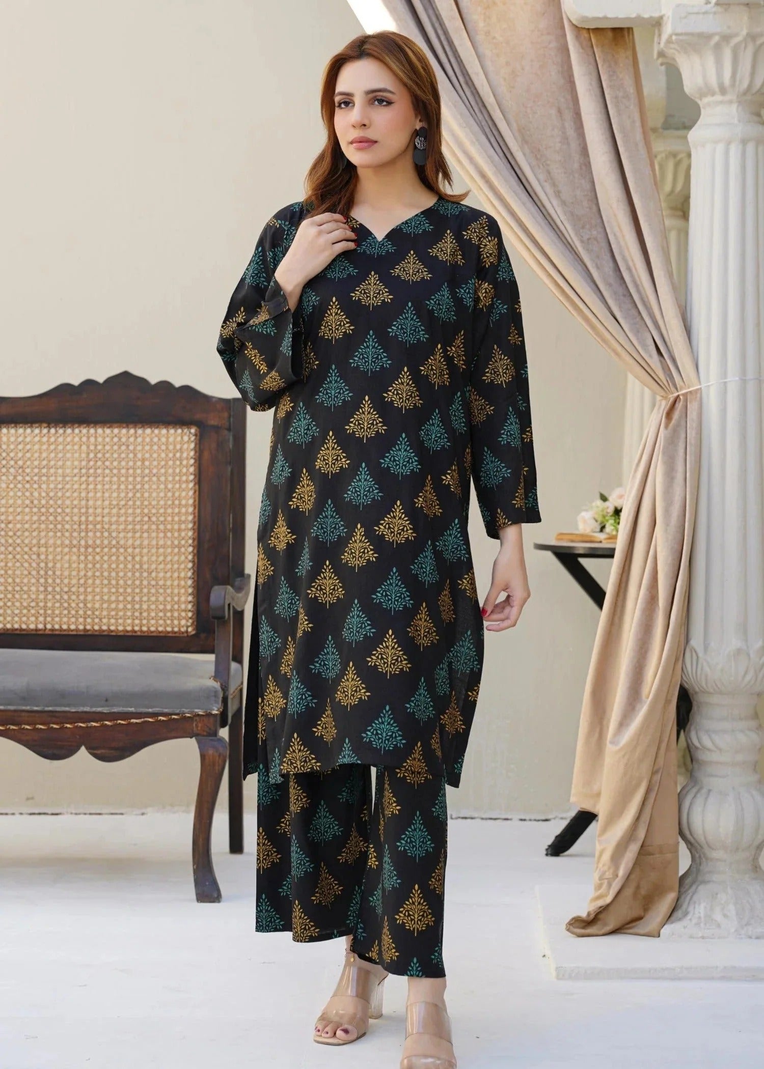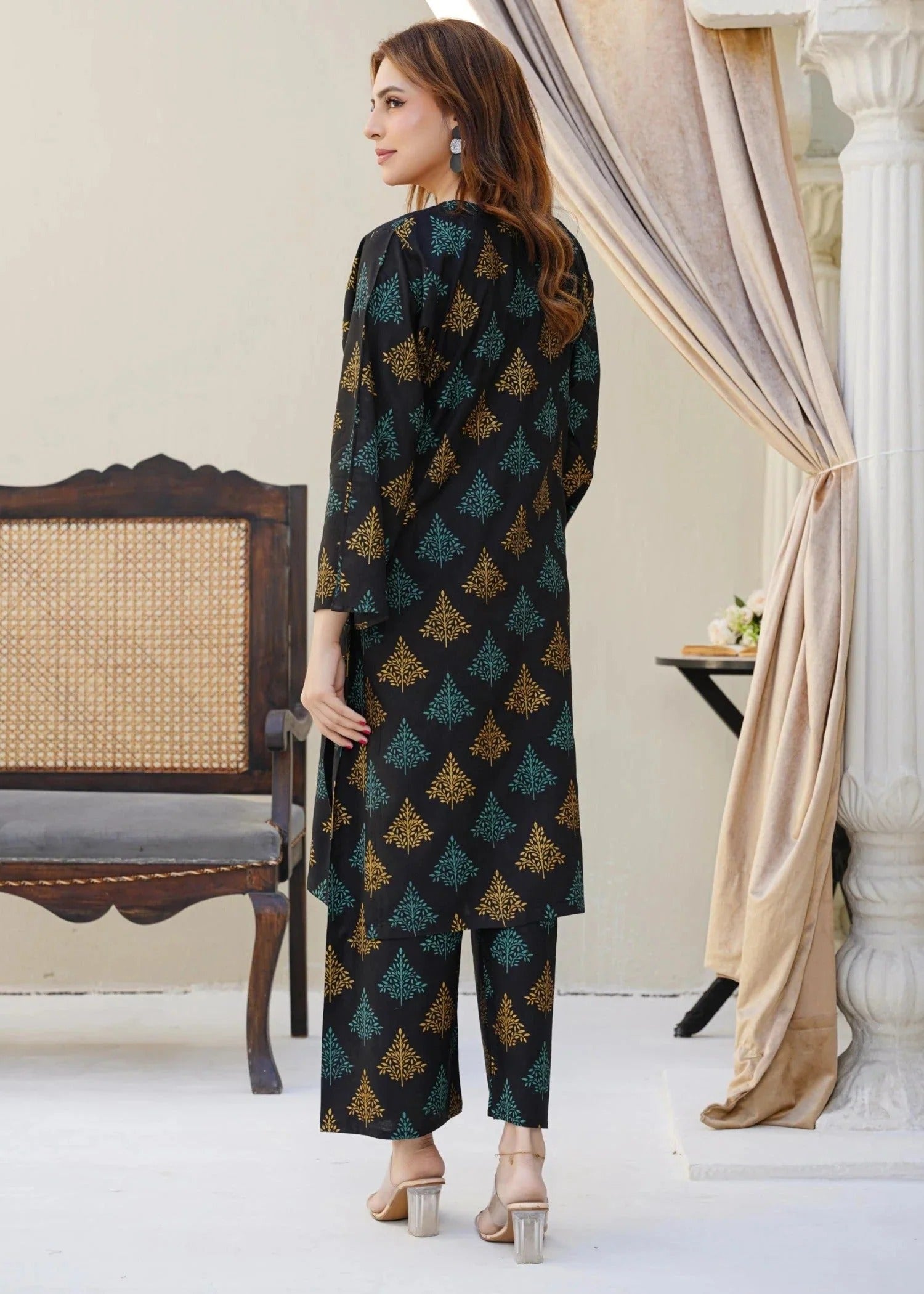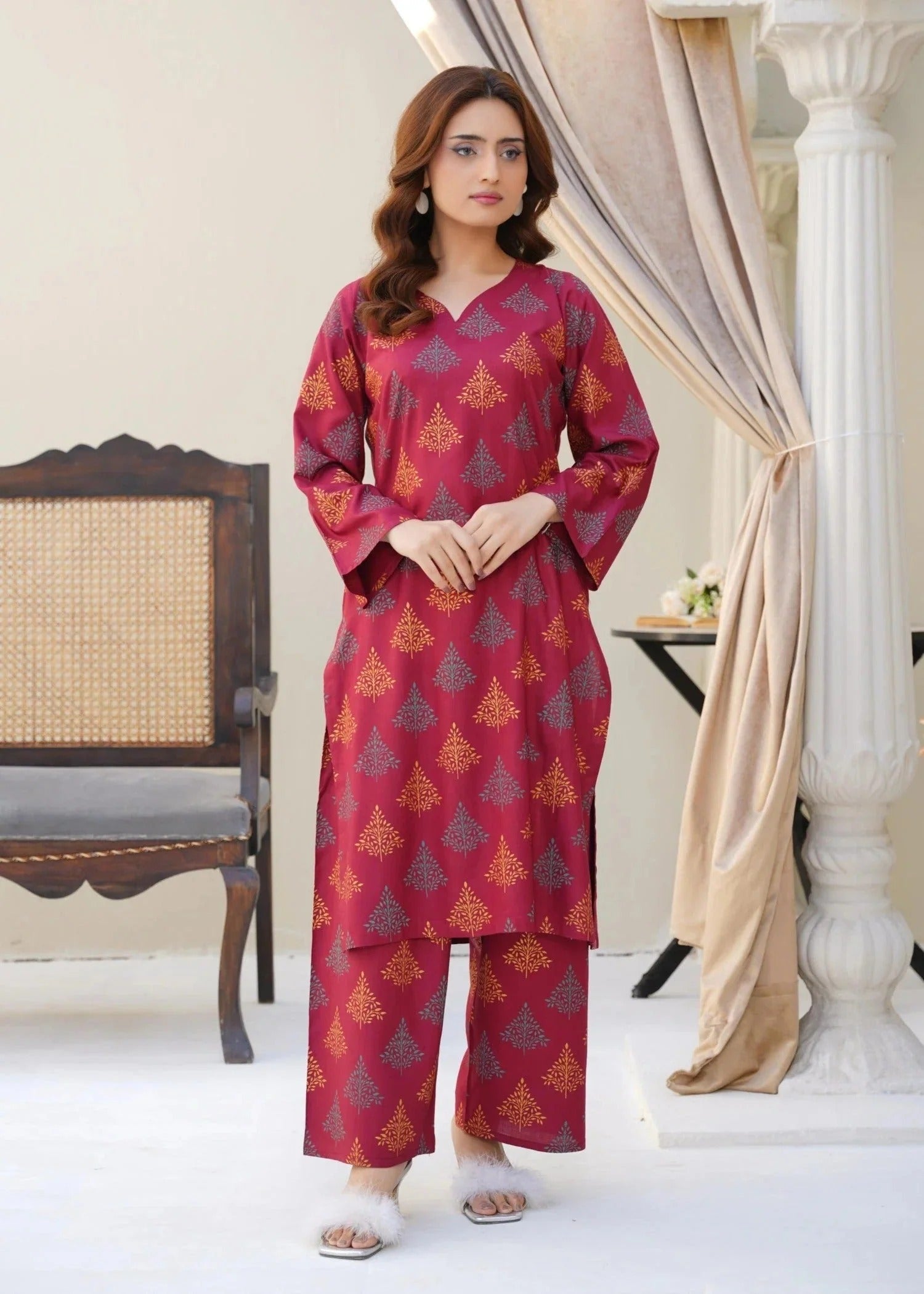 “A stylish printed co-ord set crafted from premium linen fabric, featuring a rich, deep tone and a contemporary print that perfectly blend comfort with elegance. Ideal for casual outings or semi-formal gatherings, this ensemble exudes effortless charm and modern sophistication.”