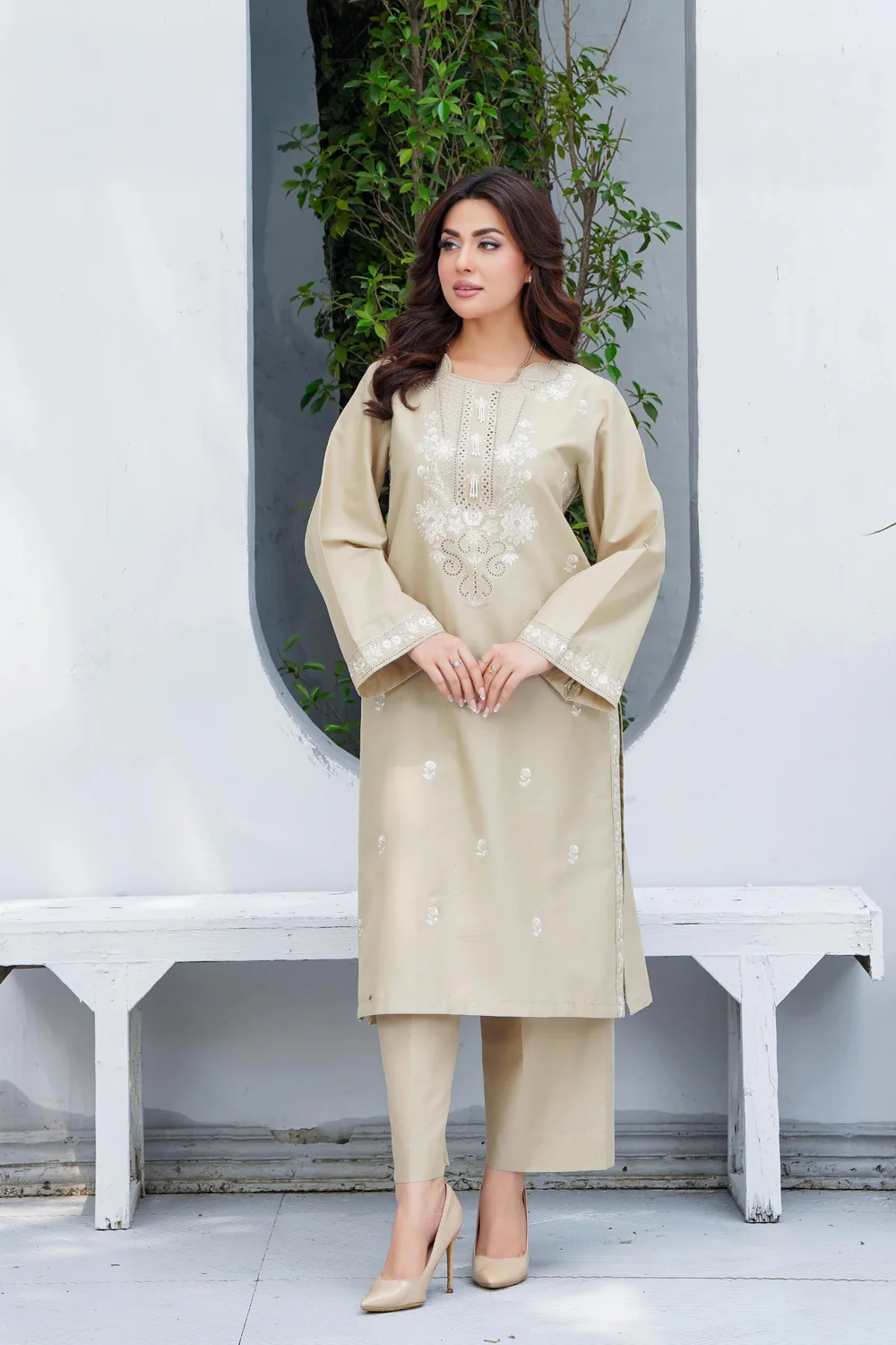 An exquisite 2-piece Eastern outfit that combines timeless embroidery with contemporary style. The intricately designed top and flowing skirt come together for a truly enchanting ensemble, perfect for memorable occasions.